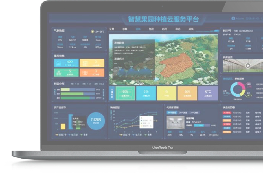 利用物聯網監測設備實時監測戶外果園或茶園的生產環境, 實行綠色防控、標準化的農事操作流程管理 ,使果品、茶葉實現綠色、高效種植。應用大數據、物聯網、移動互聯等現代信息技術,可實時遠程獲取大田基地的空氣溫濕度、土壤水分、土壤溫度、光照強度、風速風向、雨 量、蟲情病害及視頻圖像等信息,經 模型策略分析 ,可實現果園、茶園農機設備的遠程控制,智能灌溉、自動殺蟲等等,并及時做出相應 預警信息 ,實現生產管理的 精準化、標準化和自動化 ,加快推進果樹 生產智能化、管理高效化、服務便捷化 ,全面提高農業戶外生產的智能化水平。